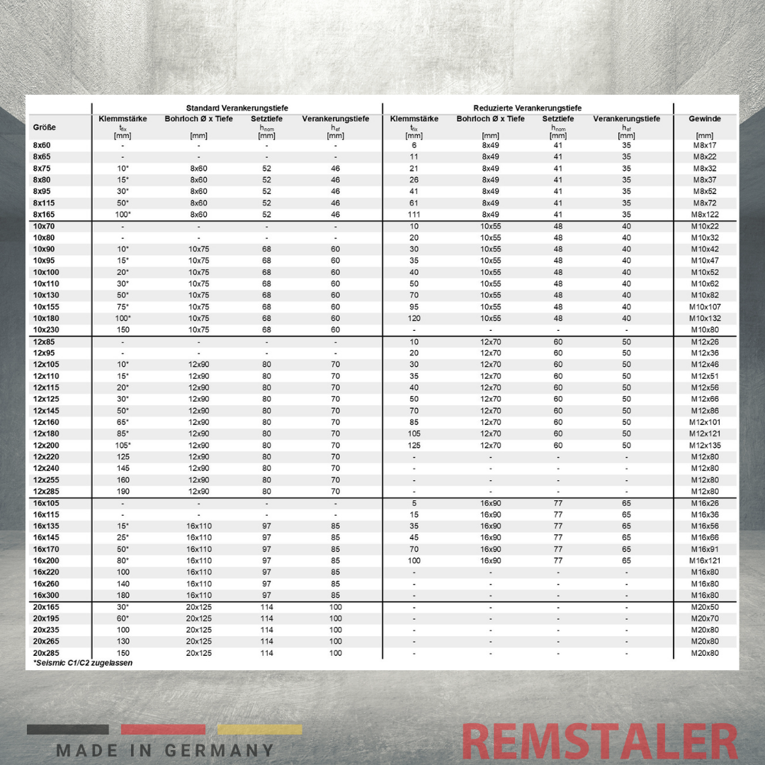 ✅ Seismische Leistungskategorie C1 und C2 (für M8 bis M20, bis 210 mm Ankerlänge) – ideal für den Einsatz in erdbebengefährdeten Zonen