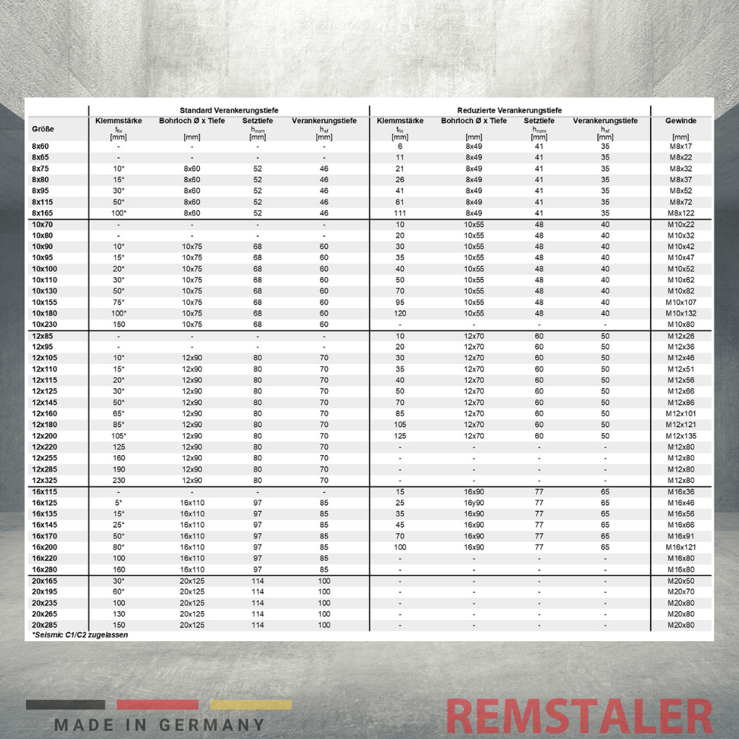 ✅ Seismische Leistungskategorie C1 und C2 (für M8 bis M20, bis 210 mm Ankerlänge) – ideal für den Einsatz in erdbebengefährdeten Zonen