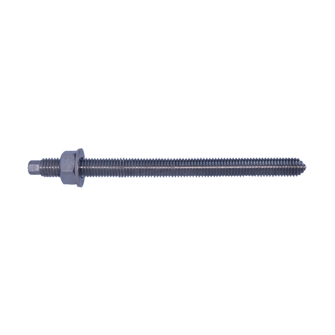 Die Ankerstange ist eine Gewindestange, die speziell für chemische Befestigungen entwickelt wurde. Ihre Durchmesser und Längen sind auf die Verbundanker, Hammereinschlagpatronen und Injektionsmörtel abgestimmt. Um die optimale Setztiefe zu gewährleisten, ist eine Setztiefenmarkierung vorhanden. Zwei 45°-Fräsungen an der Spitze erleichtern das Eindrehen und verbessern das Vermischen der Chemikalien. Die Ankerstange wird am Außensechskant eingedreht.